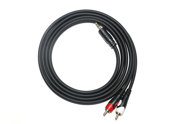 製品名:2RCA露出される平らなアクセント可聴周波およびビデオ ケーブル3.5MMへの3.5MMの二重セクション:15MM